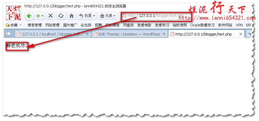 然后通过web访问,我的是 http://www.ilanni.com/blogger/test.php 。提示“解密成功”后,在服务器就可看到多了一个decoded.php文件了,打开一看,呵呵已经解密啦! ![]()