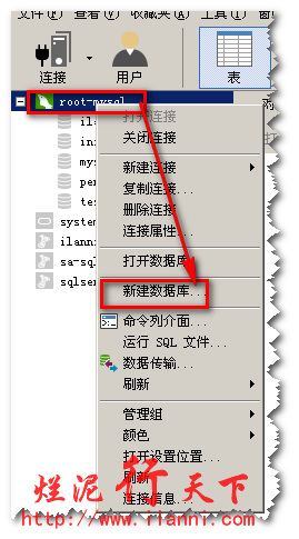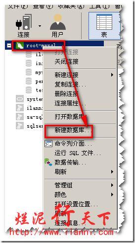 正确进入mysql数据库,右键选择“新建数据库”,如下图: