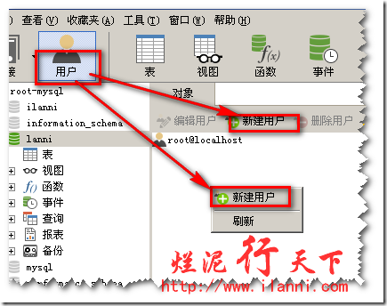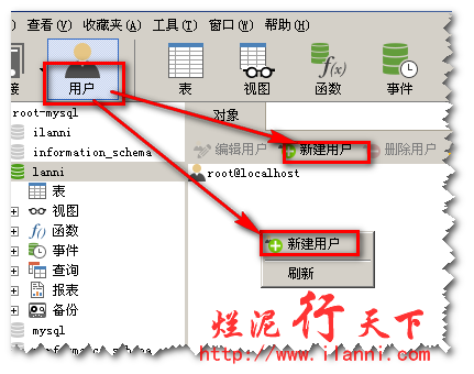 添加权限后lanni这个数据库的相关信息如下图: