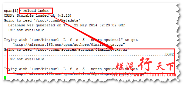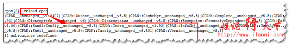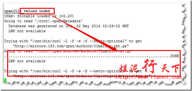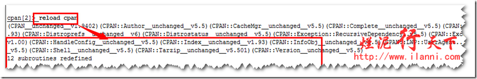 因为刚刚我们修改Config.pm的urllist,所以我们现在需要重新加载urllist,输入reload index及reload cpan命令,如下图: