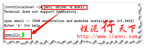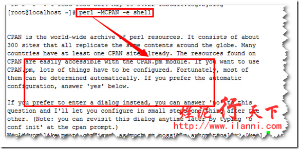 CPAN安装完毕后,我们现在登陆进去。使用:perl -MCPAN -e shell,注意该命令中的 -MCAPN是在一起的没有分开。