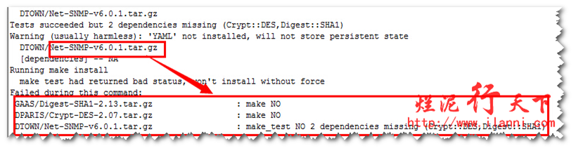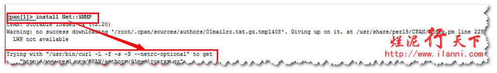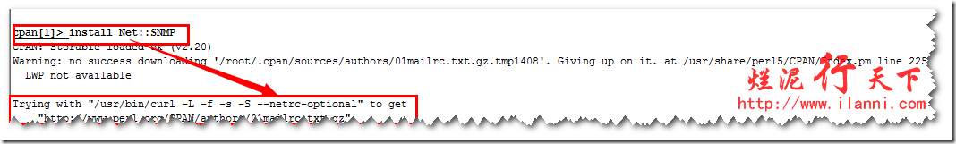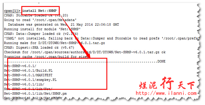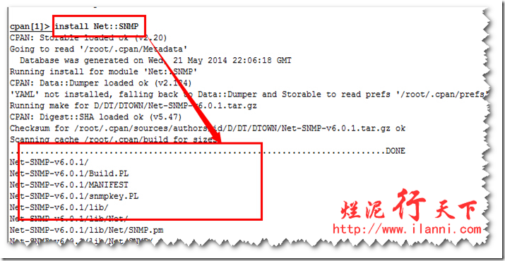 接下来我们就可以正常安装相关的模块。因为我测试的是nagios的SNMP监控插件,所以需要安装Net::SNMP(注意该模块名称的大小写)模块。如下图:
