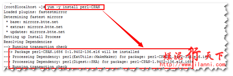Perl安装完毕后,接下来要安装CPAN。也是通过yum方式进行安装,如下图: