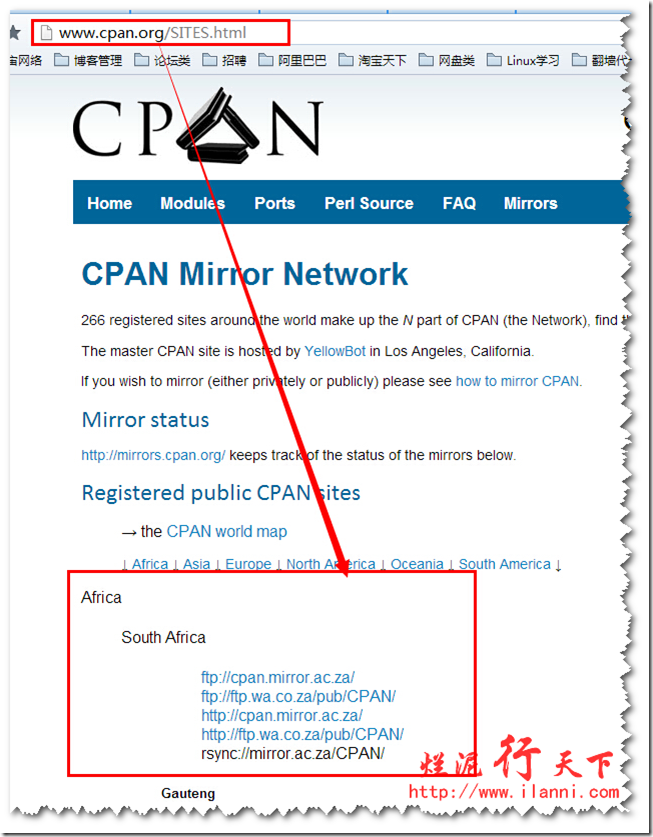 查找国内的CPAN镜像站点,可以到http://www.cpan.org/SITES.html,这个站点进行查询。