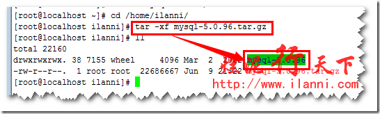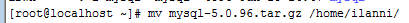 把mysql安装包移动到ilanni用户的家目录下,并解压,如下图: