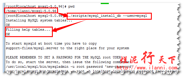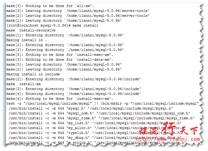 以上工作是前提工作,做完后。我们现在进入mysql-5.0.96目录开始安装mysql。