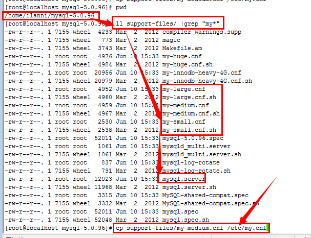 cp /home/ilanni/mysql-5.0.96/support-files/my-medium.cnf /etc/my.cnf