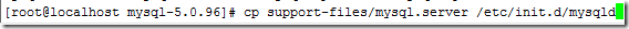 cp /home/ilanni/mysql-5.0.96/support-files/mysql.server /etc/init.d/mysqld
