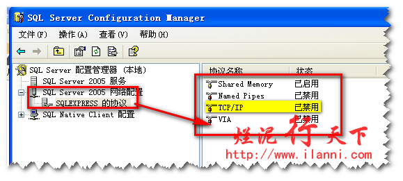 可以看到此时在右侧的“TCP/IP”选项是“禁用”状态,我们现在启用TCP/IP连接。