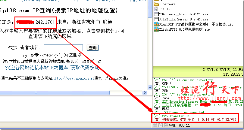 可以看到我本地还是不能连接FTP服务器的,那么被允许的IP地址呢?如下图: