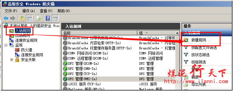 在防火墙的规则选项中,我们只需要配置入站规则即可。如下图: