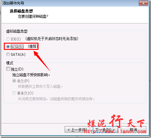 在这磁盘的格式建议还是选择ISCSI,如下图: