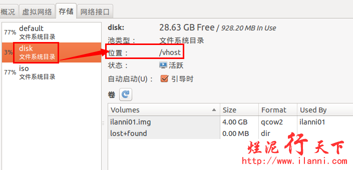 注意/home/iso是在KVM服务器上已经存在的目录,如果是KVM服务器通过远程NFS挂载到本地的目录是不行的。