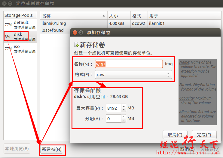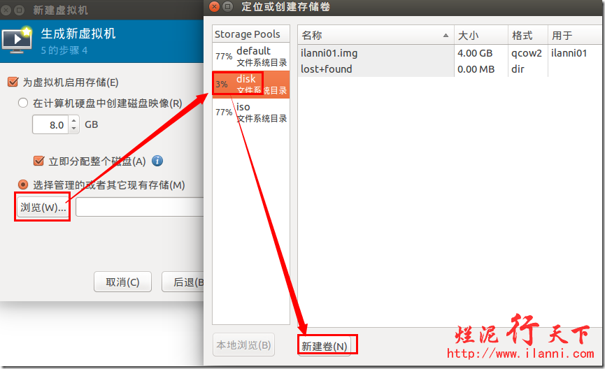 在新建虚拟机之前,我们要做两件事情。第一创建虚拟机需要加载的系统镜像存储池,第二创建虚拟机的硬盘存储池。