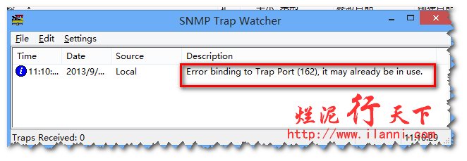 该软件会自动检测SNMPTrap的162端口是否被占用,如果占用的话,它会提示的。如下图: