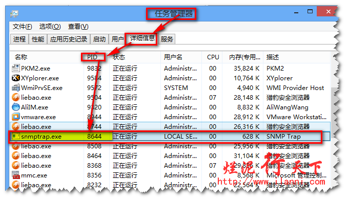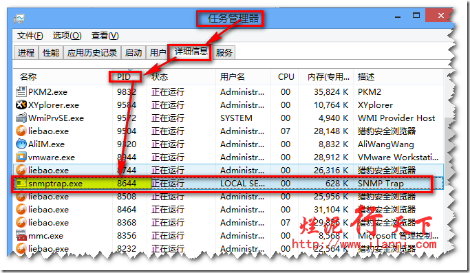通过上图我们找到占用162端口的进程PID号,然后我们再任务管理器中找到该进程,如下图示: