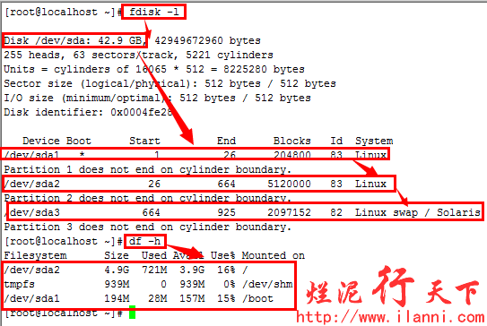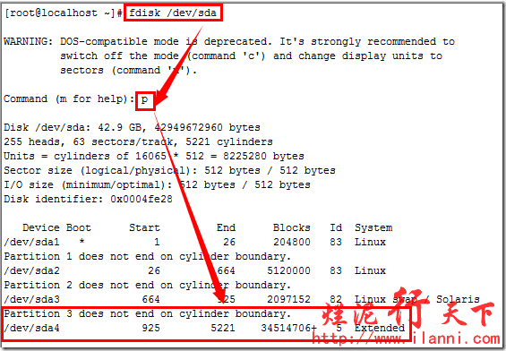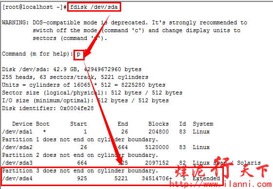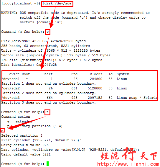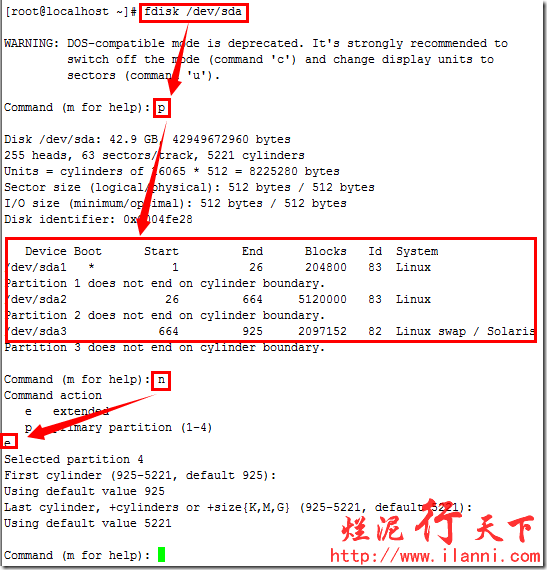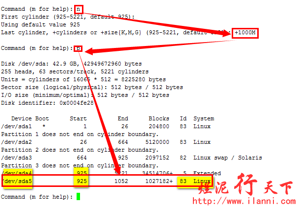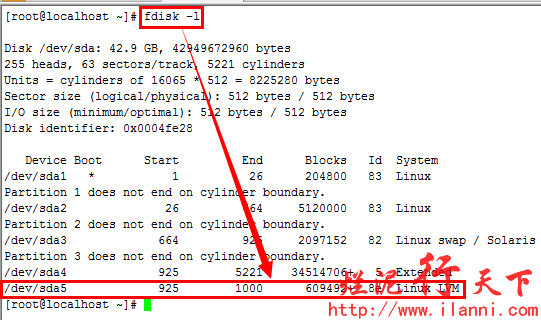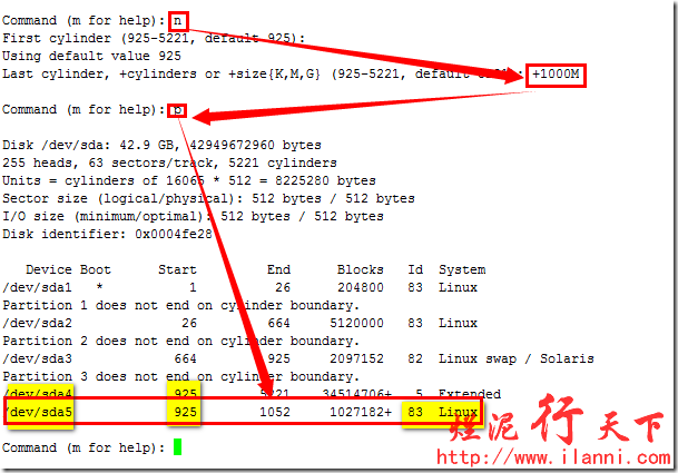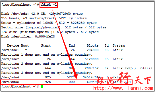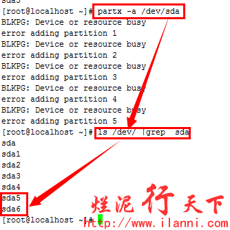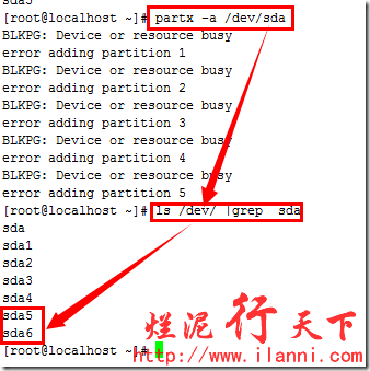 硬盘分区结束后,为了使分区表生效,我们可以使用 partx –a /dev/sda命令或者重启系统。或者最直接的方法就是在退出fdisk时,使用wx参数保存,可以直接生效。