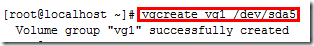 注意该条命令的意思是创建卷组vg1,同时把物理卷/dev/sda5加入该卷组中。