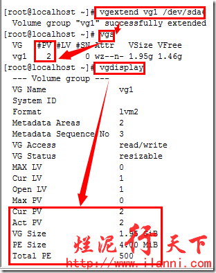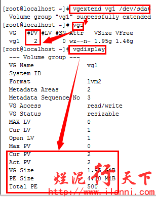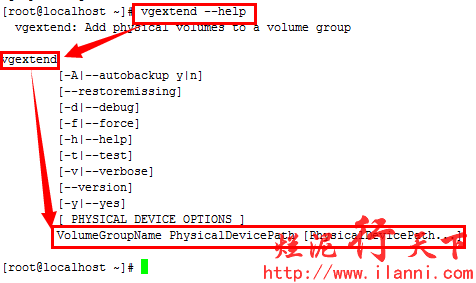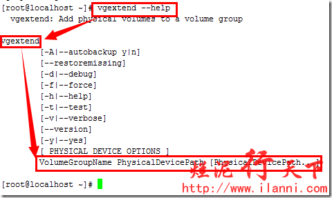 以上卷组不存在的情况,如果卷组已经存在,那么我们再加入新的物理卷时,就要使用vgextand命令,有关vgextand命令使用方法如下: