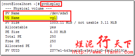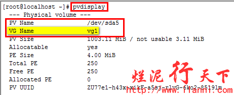通过上图,我们现在可以很明显的看到物理卷/dev/sda5已经加入卷组vg1中。