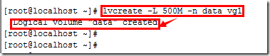 该条命令的意思是在卷组vg1中创建逻辑卷data,并给与500M空间。