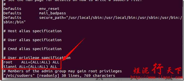 未经允许不得转载:烂泥行天下 » 烂泥:【解决】ubuntu提示ilanni不在sudoers文件中错误