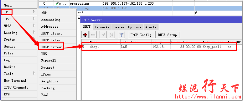 而一般路由器根本就不支持此特殊功能,所以我们需要关闭路由器ROS的DHCP功能。只让路由器ROS当作网关使用,当然ROS的其他功能,包括ROS的路由策略、ARP地址绑定、限速等等都可以正常使用。