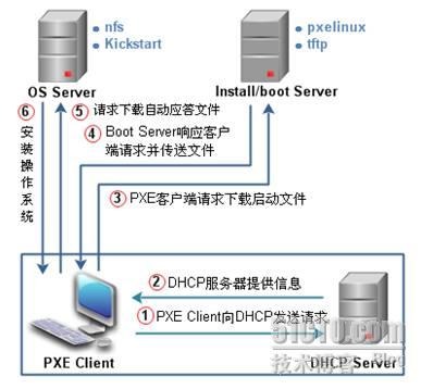 下图中介绍了Linux中自动安装系统的详细工作过程: