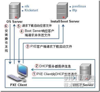 简单地说PXE网络安装,客户机通过支持PXE的网卡向网络中发送请求DHCP信息的广播请求IP地址等信息,DHCP服务器给客户端提供IP地址和其它信息(TFTP服务器、启动文件等),之后请求并下载安装需要的文件。在这个过程中需要一台服务器来提供启动文件、安装文件、以及安装过程中的自动应答文件等。