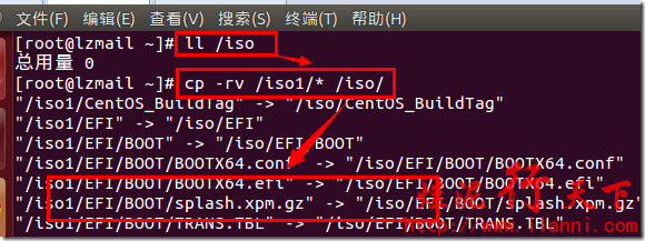 把/ios1目录下所有的内容全部复制到/iso目录下,如下: