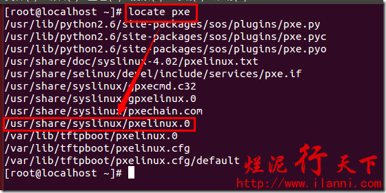 或者直接使用locate pxe进行搜索也可以,该命令的意思是查找以pxe开头的所有文件。如下: