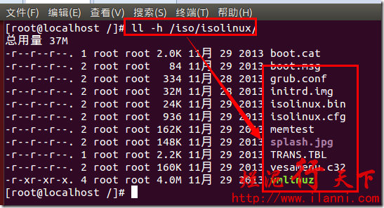 打开/iso/isolinux目录,isolinux目录中主要是存放光盘启动时的安装界面信息,在这里面有几个文件是我们需要的。