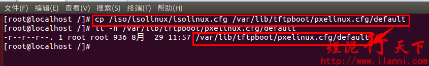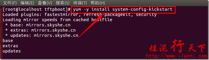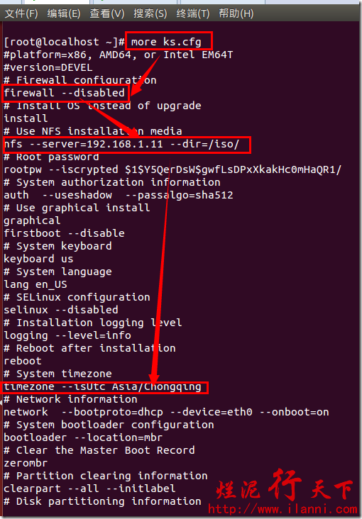 如果你对这个配置文件比较熟悉的话,你可以直接把该文件复制一份到/var/ftp/pub目录下,并重命名为ks.cfg。修改保存后,就可以去启动客户端。
