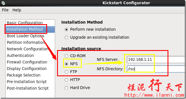 该界面主要是配置是通过何种方式安装系统的,在此我们选择的是NFS方式。这个我们也在前文提到过。