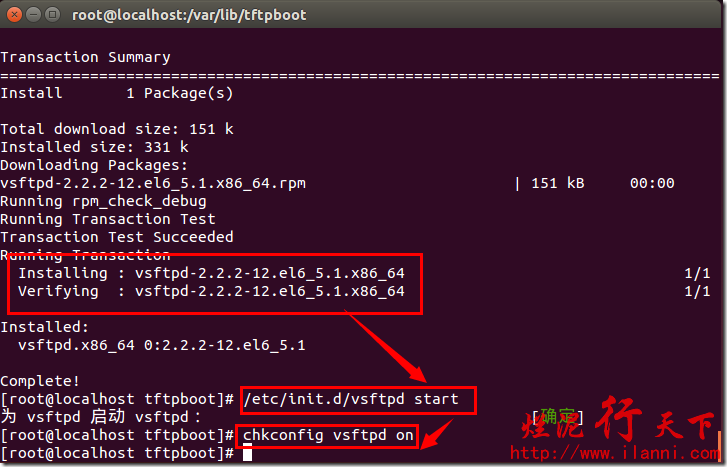 要把pxelinux.0复制到tftp的根目录下,要先安装和配置TFTP服务器,有关TFTP服务器的安装及配置可参考这篇文章《烂泥:CentOS安装及配置TFTP服务器》。在此我们的TFTP根目录还是使用默认,为/var/lib/tftpboot/。其上传和下载的权限也已经开启。如下: