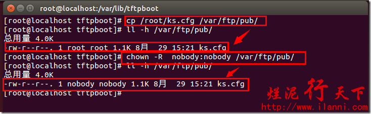 复制kickstart的自动应答文件ks.cfg,到ftp的公共目录下并修改其相应的用户组,如下: