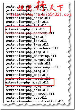 查找“;extension=php_gd2.dll”将前面引号去掉修改为“extension=php_gd2.dll”