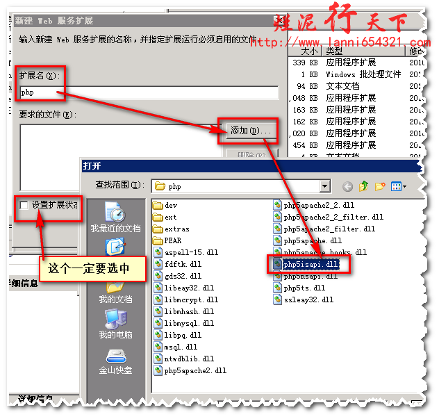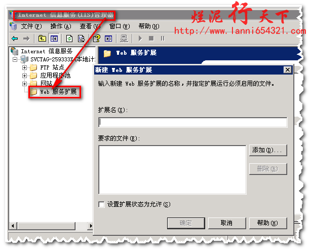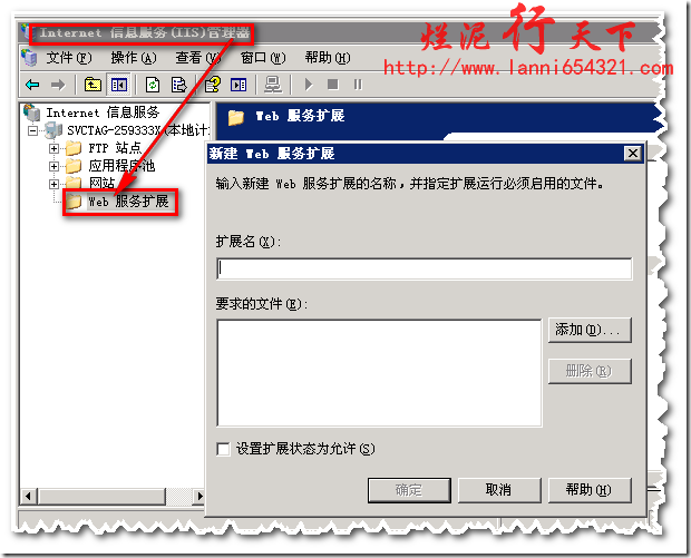 打开“Internet信息服务管理器”—“Web服务扩展”—“添加一个新的Web服务扩展”