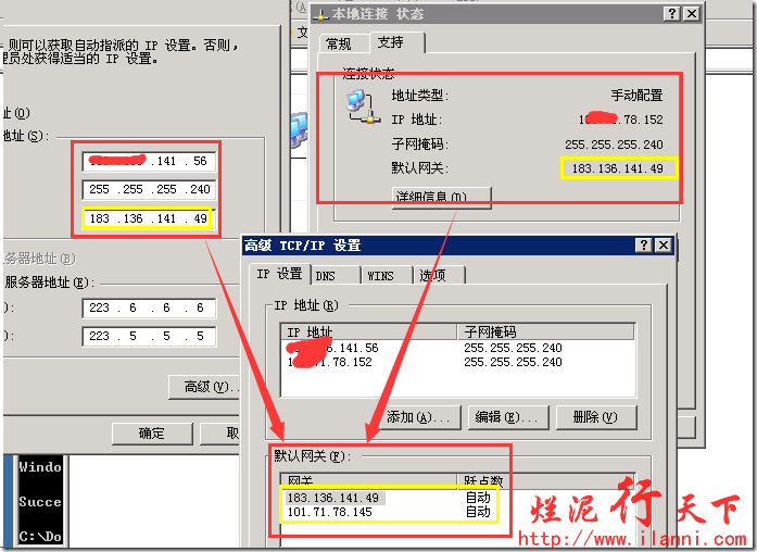 发现在默认网关中只有电信的IP,而没有联通的IP。猜想是不是因为这个原因导致的,果断添加进去。如下: