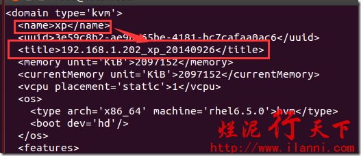 修改KVM虚拟机VM的XML配置,添加<title>参数,在该参数中可以自定义VM的信息,包括VM的IP、hostname等等。具体操作如下:
