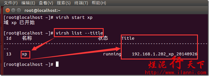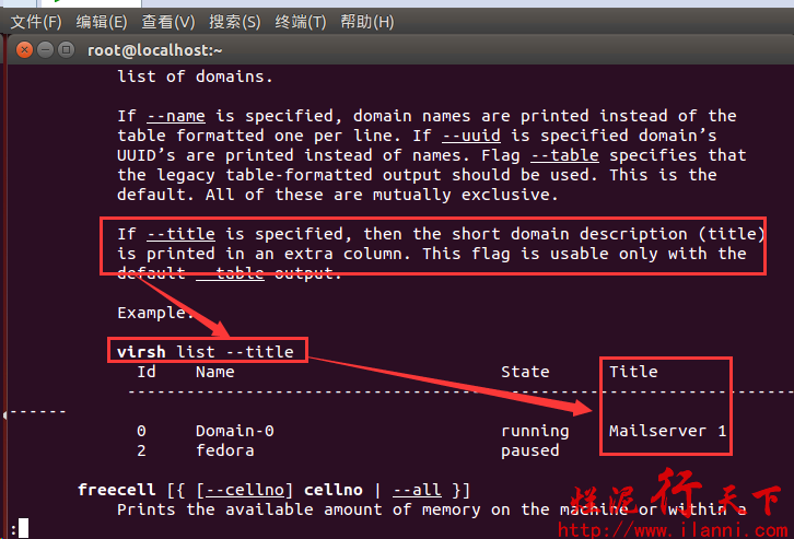 <title>参数,没有在virt-install命令中,而是在virsh命令中,我们可以通过man virsh,进行查看。如下: