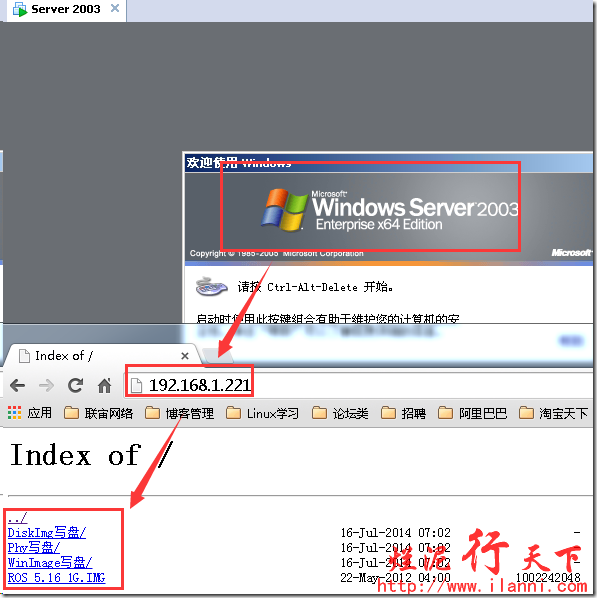 注意本次实验使用的windows server 2003 64bit,而且还是在虚拟机中。IP地址为192.168.1.221