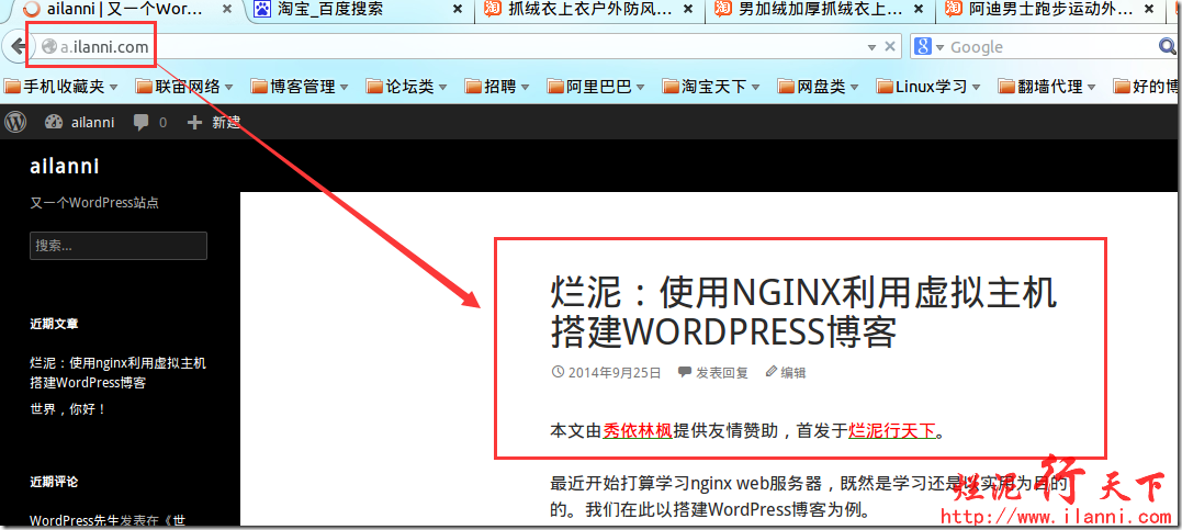 我们来开始测试实际生产环境中的配置,在《烂泥:使用nginx利用虚拟主机搭建WordPress博客》文章中我们已经配置好了,虚拟主机a.ilanni.com。如下: