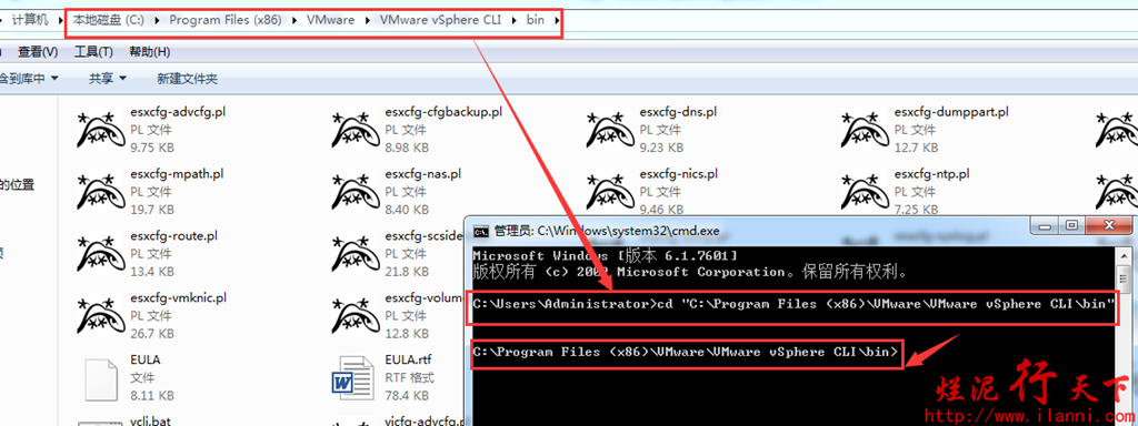 在此我已经下载并安装VMware vSphere CLI工具,我们主要是使用该工具提供的一个vicfg-snmp.pl脚本。在系统命令行下,切换该工具的安装目录下。如下: