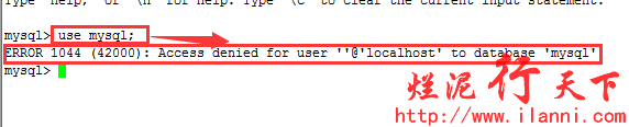 这样操作完毕之后,发现现在远程主机是可以连接mysql数据库了。但是在mysql数据库服务器上却不能连接本地的mysql数据库,如下: