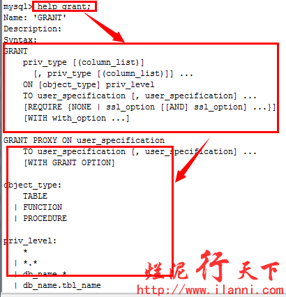我们再来查看grant命令的使用方法,如下: