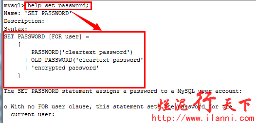 通过上图,我们可以知道set password的使用方法以及使用实例。