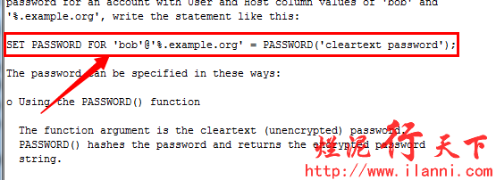 通过上图,我们可以知道修改用户密码的命令是set password。