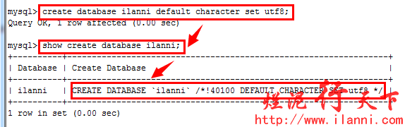 查看数据库ilanni创建时执行的sql语句,如下: