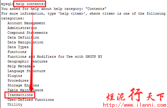 我们通过help contents就可以查看到所有的mysql命令,这个就是mysql帮助索引。如下: